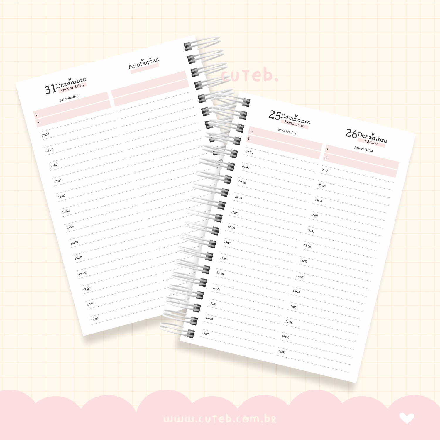 • 1 dia por página com e sem horário (Na opção com horário, o sábado e domingo permanecem SEM HORÁRIOS.)