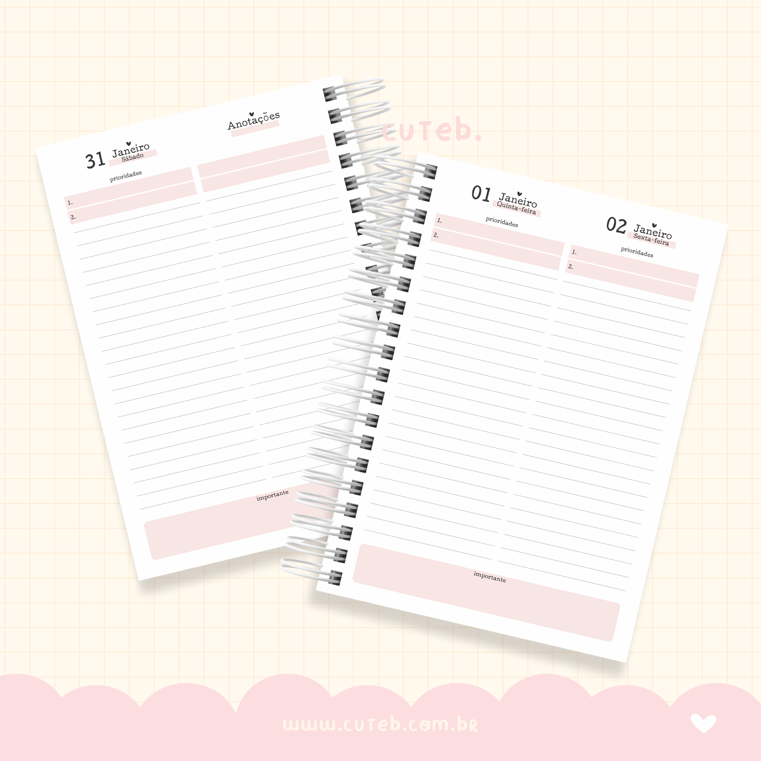 • 354 páginas(1 dia por página) e 224 páginas (2 dias por página)